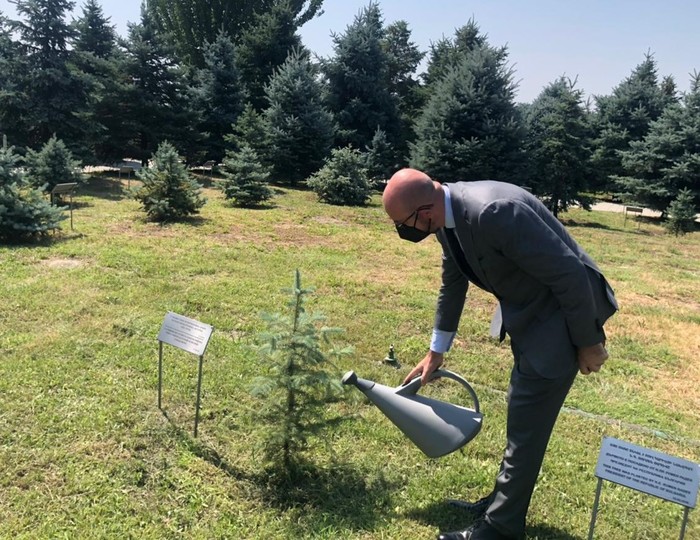 Եվրոպական խորհրդի նախագահ Շառլ Միշելը փոխվարչապետի պաշտոնակատար Մհեր Գրիգորյանի ուղեկցությամբ այցելել է Ծիծեռնակաբերդի հուշահամալիր