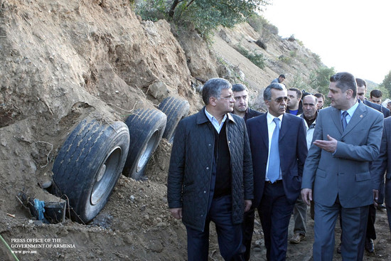 PM Visits Landslide Zone At Vanadzor-Bagratashen Road Section