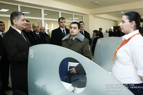 Prime Minister Tigran Sargsyan visited the new administrative building of the Passport and Visa Department of the RA Police in Yerevan’s Davidashen community, opened in September 2013. The Prime Minister, accompanied by RA Police Chief Vladimir Gasparyan and Deputy Police Chief Artur Osikyan, toured the premise and got acquainted with the working conditions and technical equipment. Tigran Sargsyan visited a number of subdivisions, such as departments of applications, population state... more »