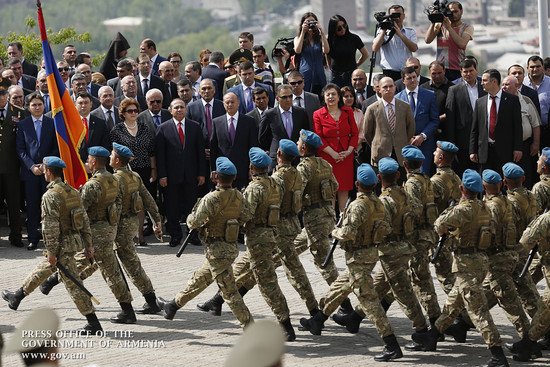 Today, on May 9, our nation marks the 69th anniversary of the victory in the Great Patriotic War and the 22nd anniversary of Shushi liberation. To attend the Peace and Victory Day celebrations in Yerevan, accompanied by members of legislative and executive bodies and clergy representatives, Prime Minister Hovik Abrahamyan visited today the Victory Park in Yerevan. The Prime Minister laid a wreath at the monument to the Unknown Soldier and paid tribute to those heroes who fell in the... more »