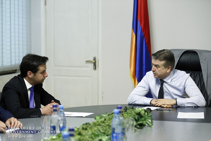 Prime Minister Karen Karapetyan received today a delegation of students and alumni from the Moscow-based Skolkovo business school. The meeting discussed issues related to possibilities for implementation of investment projects in Armenia. In this context, the Prime Minister referred to the steps taken by the Government to improve the business environment and implement reforms in different sectors of the economy.