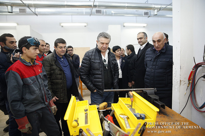RA Prime Minister Karen Karapetyan, who is paying an official visit to the Republic of Artsakh, visited today educational institutions and a production facility. Accompanied by AR State Minister Arayik Harutyunyan, the Prime Minister first visited the Yeznik Mozyan Vocational School in Shushi. The Premier was shown the amenities available for the students in construction and related fields. Karen Karapetyan toured the premises, which feature 6 workshops equipped with all... more »