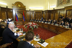 Prime Minister Hovik Abrahamyan received the delegation led by visiting RF Premier Dmitry Medvedev. After the private talks of the Prime Ministers, the two delegations met in an enlarged sitting.