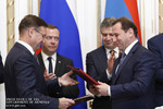 In the framework of RF Premier Dmitry Medvedev’s official visit to Armenia, a number of documents have been signed today in the Office of Government, related to telecommunication and logistics, emergency situations, as well as direct cooperation between individual administrative units.