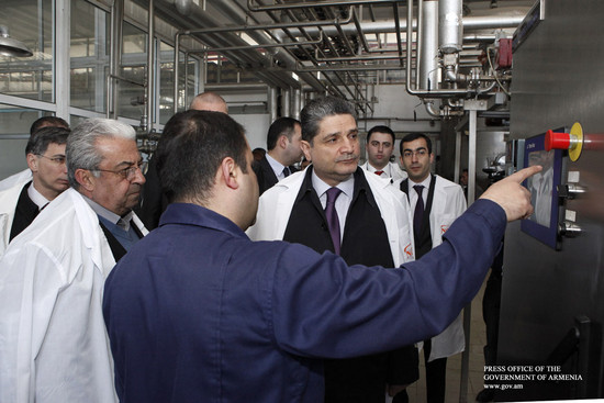 Премьер-министр Тигран Саркисян посетил компанию «Евротерм». Глава Правительства ознакомился с продукцией и дальнейшими программами основанной в 1998 году компании, занимающейся переработкой фруктов и овощей, производством натуральных соков, консервов и концентратов.