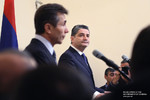 Премьер-министр Армении Тигран Саркисян – Я хочу присоединиться к тем теплым словам, которые озвучил господин Иванишвили. Это наша первая встреча, но состоялся очень теплый разговор, и я благодарен моему коллеге за такие подходы. Мы констатировали, что в армяно-грузинских отношениях нет какого-либо вопроса, который мы не в состоянии решить совместными обсуждениями. Мы зафиксировали, что существует большой потенциал для углубления и расширения экономических отношений между двумя странами. Очень благодарен моему коллеге, что он положительно откликнулся на все наши просьбы. Мы быстро сформируем рабочие группы и подготовим нашу следующую встречу межправительственной комиссии, и во всех сферах у нас есть достаточно интересные, далеко идущие программы. Уже сегодня были подписаны два соглашения о сотрудничестве: одно в сфере культуры, другое – об обеспечении более созвучной работы таможенных пунктов. Уверен, что в будущем будут и новые договоры, стимулирующие наше сотрудничество.