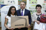 Глава Правительства сперва ознакомился с представленными на итоговой выставке произведениями, затем вручил почетные грамоты директорам школ, занявших 12 первых мест за лучшие работы и ноутбуки – учащимся. Директорам и учащимся школ, занявших 12 вторых мест, Министр образования и науки РА Левон Мкртчян вручил соответственно почетные грамоты и планшеты, а директорам и учащимся школ, занявших 12 вторых мест, Министр экономики РА Арцвик Минасян вручил соответственно почетные грамоты и сотовые телефоны. В рамках программы представившие работы директора и учащиеся других школ также удостоились почетных грамот и поощрительных призов.