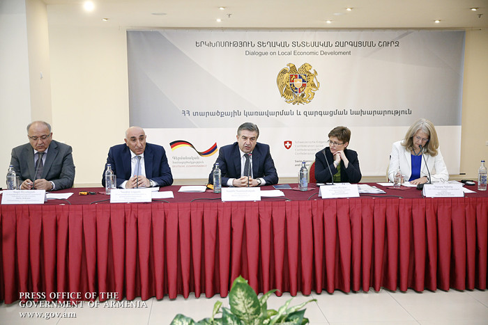 Премьер-министр Карен Карапетян сегодня принял участие в обсуждении по теме «Диалог вокруг местного экономического развития», в рамках которого состоялась презентация пособия «Развитие экономики в общинах». Пособие разработано Министерством территориального управления и развития РА и Германским обществом международного сотрудничества.